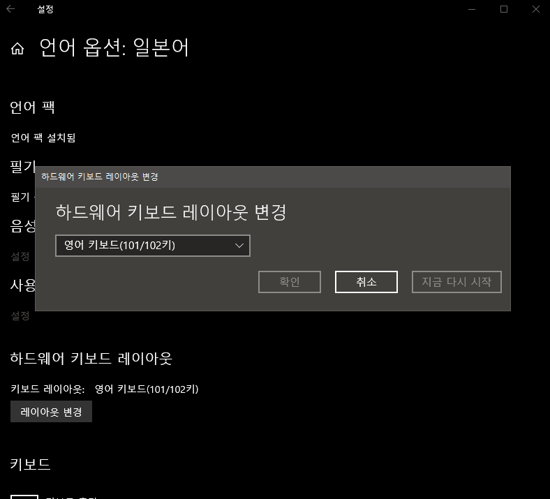 설정 - 시간 및 언어 - 언어 - 기본 설정 언어 - 일본어 - 옵션